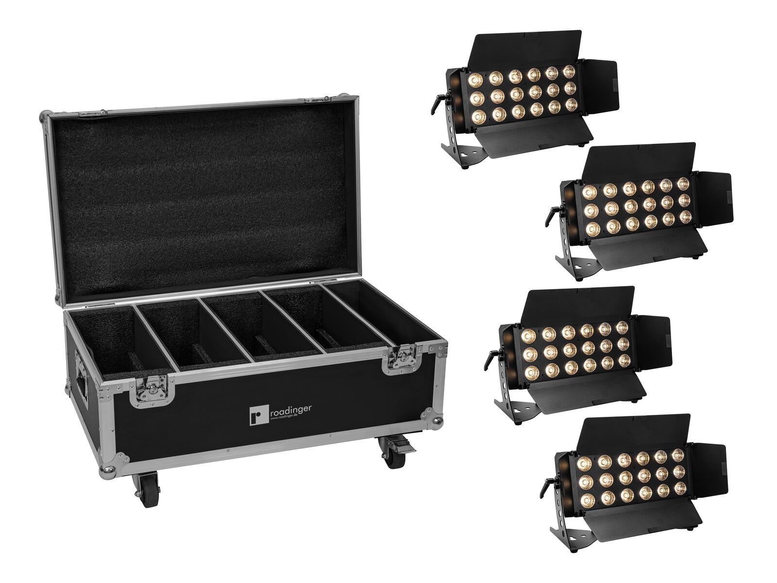 ROADINGER Flightcase 4x LED CLS-18 QCL RGB/WW mit Rollen