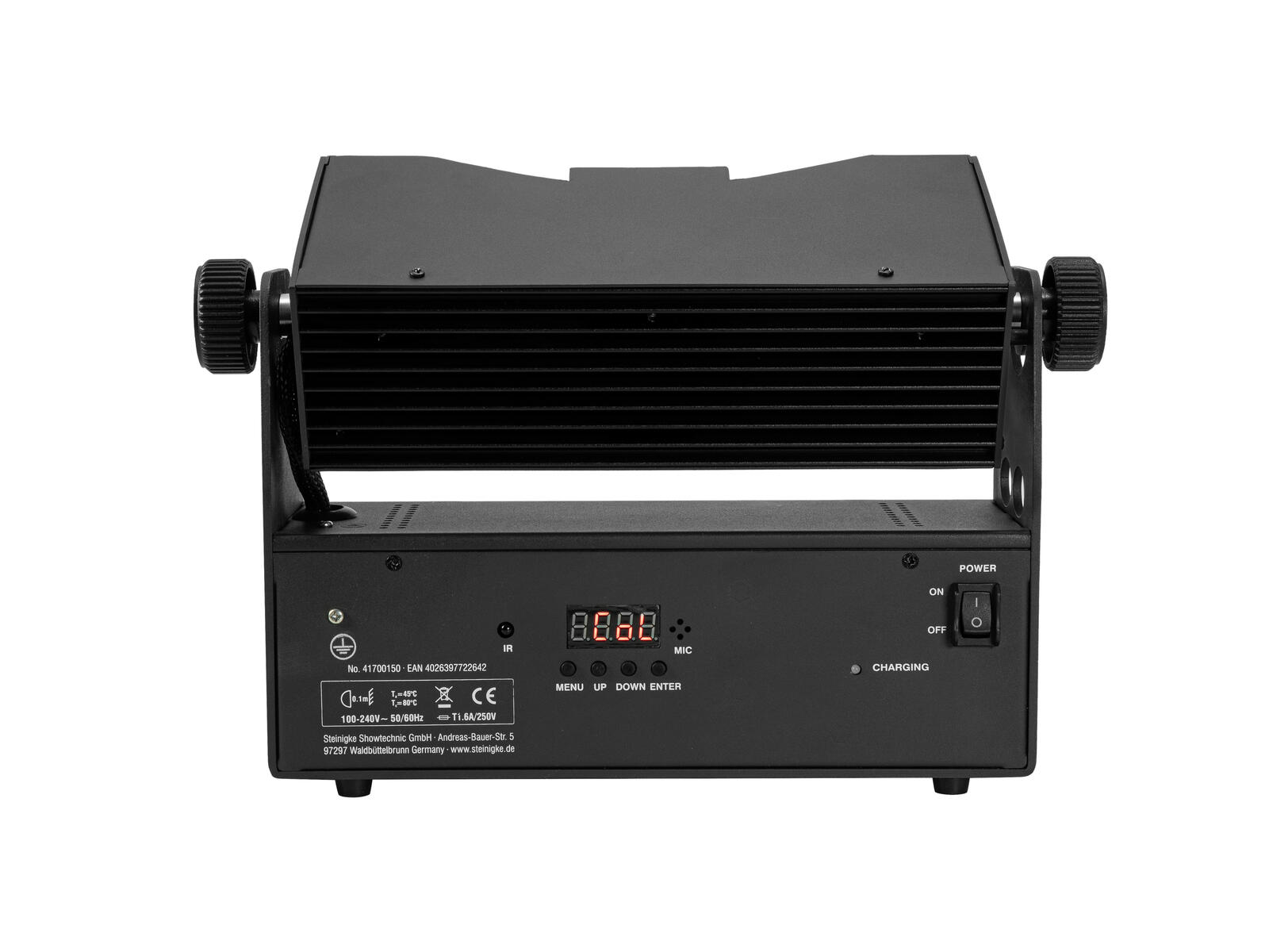 - Ansteuerbar über Stand-alone; Master/Slave-Funktion; Musiksteuerung über Mikrofon; IR-Fernbedienung; DMX; QuickDMX über USB (optional); W-DMX by Wireless Solution über USB (optional); CRMX by LumenRadio über USB (optional)
