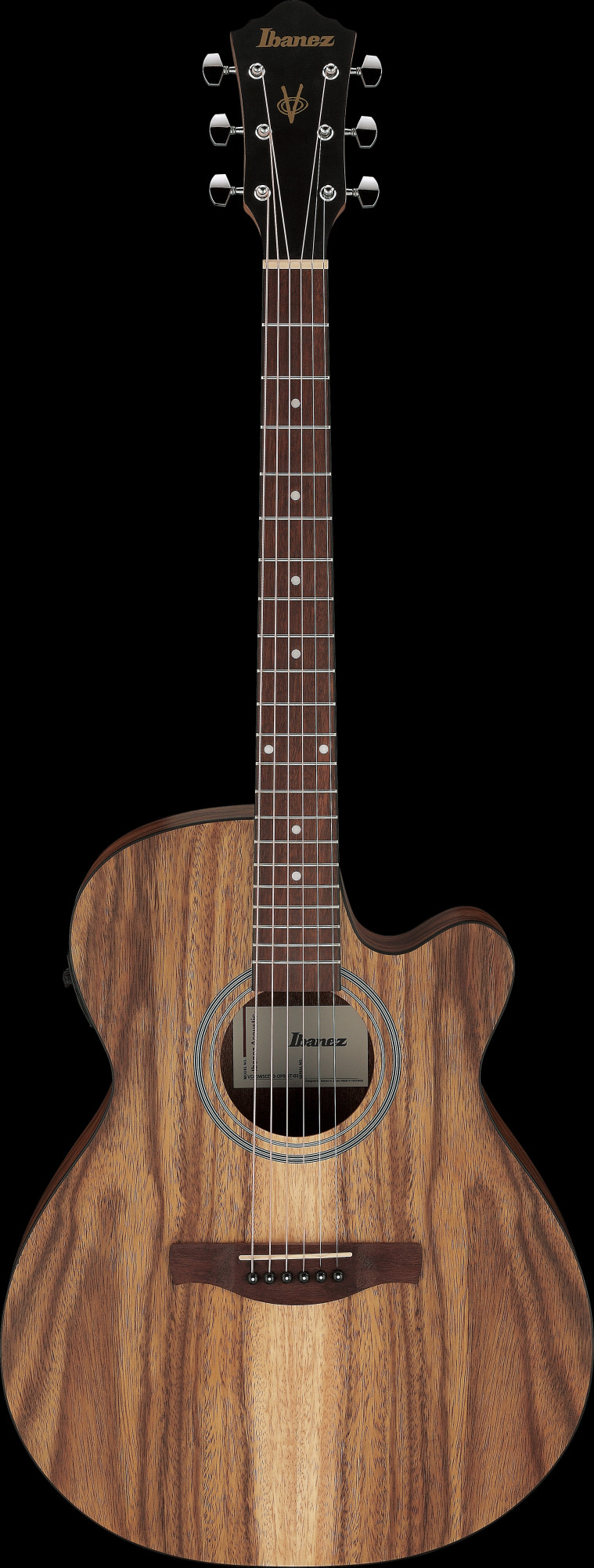 Die VC40WSCE kommt mit einem Meranti Hals, einem Nanduholz Griffbrett und weiße Siris Decke, Zargen & Boden. Außerdem ist die Aukustikgitarre mit einem Ibanez Undersaddle Tonabnehmer, einem Ibanez AEQ-2T Preamp mit einem eingebautem Stimmgerät und einem Nanduholz Steg ausgestattet.