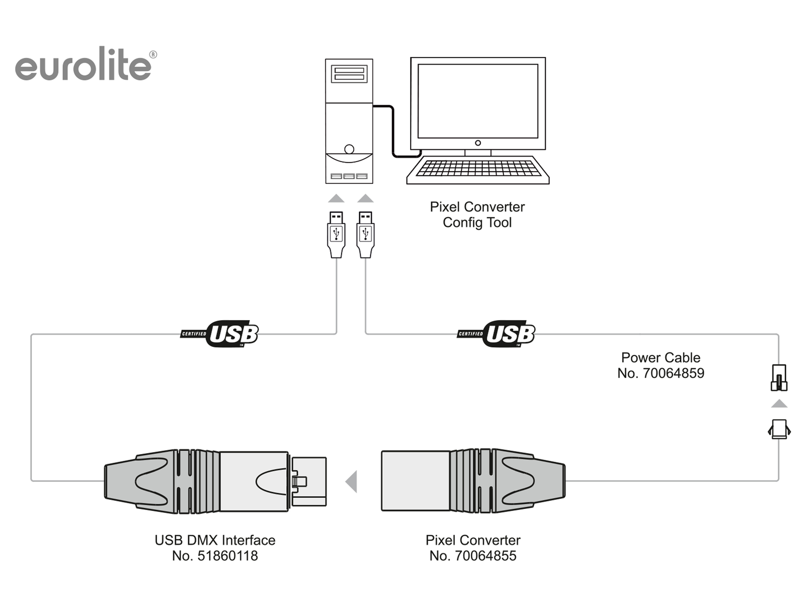 Dient nur der Stromversorgung! Für die Konfiguration des "DXT DMX Pixel Converter PRO" wird zusätzlich ein "USB-DMX512-Interface/Upload Adapter" (51860118) benötigt!