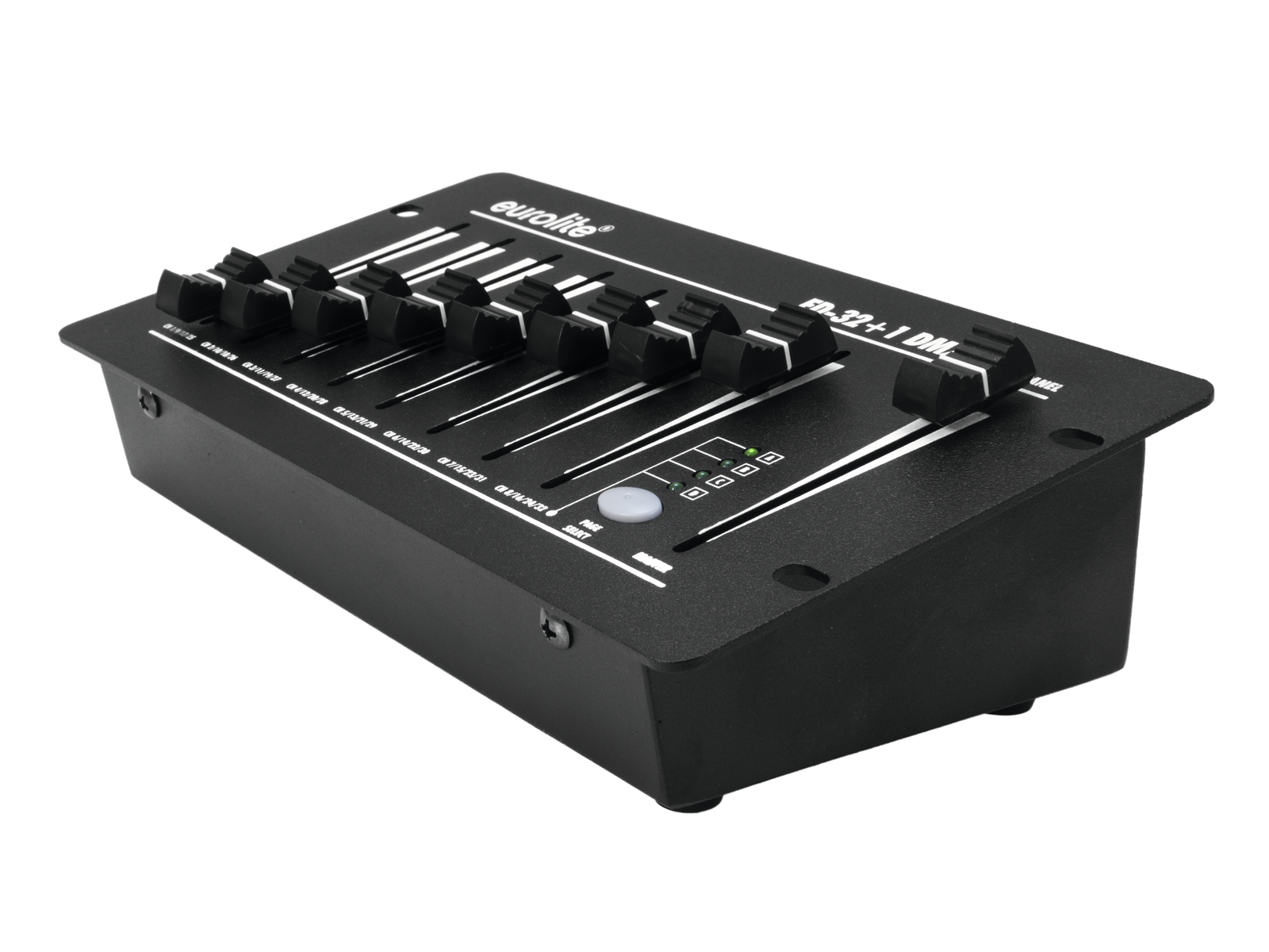 - 8 Kanalfader zur Einstellung des DMX-Werts in 4 Gruppen