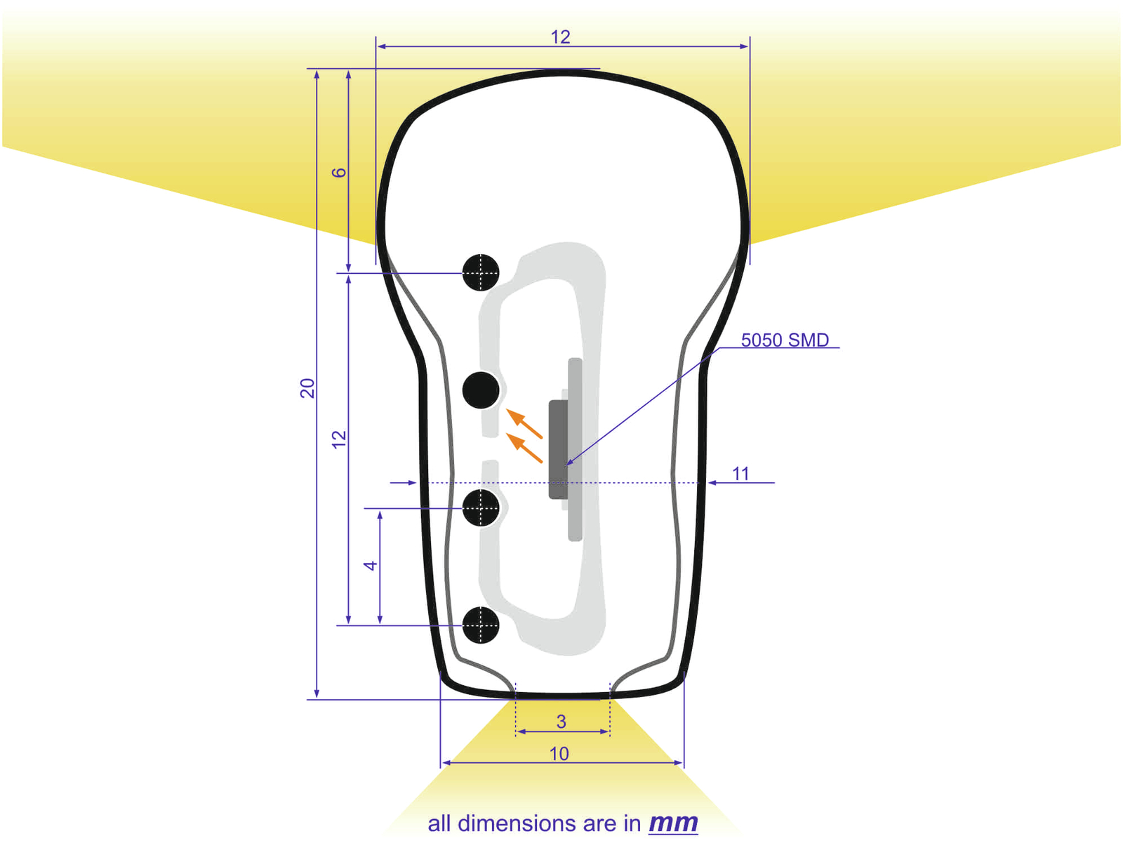 Lichtaustritt: | Oben 12 mm Unten 3 mm |