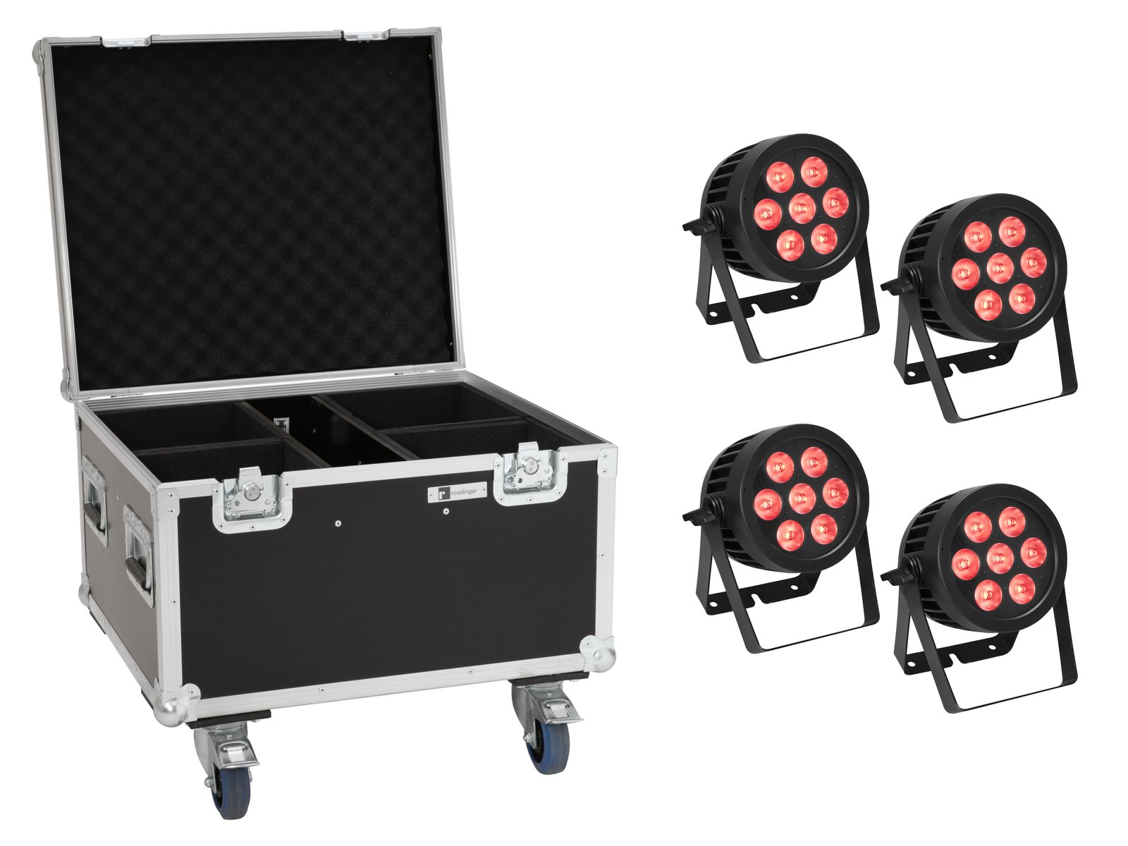 ROADINGER Flightcase 4x LED IP PAR 7x8W QCL/7x9W SCL mit Rollen
