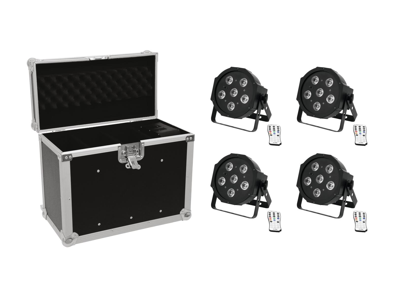 4x flacher Scheinwerfer mit 5 x 3-W-3in1-LED inklusive praktischem Transportcase