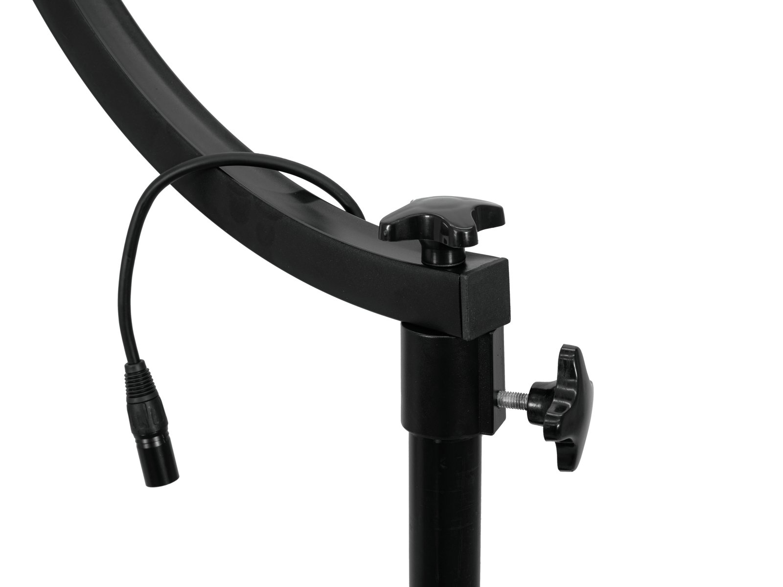 - Adapter (Ø 35 mm) zur Befestigung auf Stativen, Ständern und DJ-Tischen