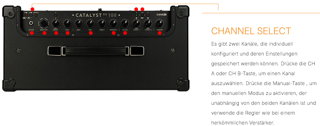 Die Catalyst® CX-Familie besteht aus drei Zweikanal-Combo-Verstärkern, die wie herkömmliche Gitarrenverstärker funktionieren, aber die Vielseitigkeit moderner Verstärker bieten. Sie verfügen über 12 Verstärker-Voicings, die vom preisgekrönten Helix®-Verstärker und -Effektprozessor abgeleitet sind - von erstklassigem Clean-Sound bis hin zu modernem High-Gain - und jedes Verstärker-Voicing ist mit einem individuellen Boost-Typ kombiniert. Außerdem gibt es 24 Effekte in HX®-Qualität, die vier Effektkategorien abdecken. Zu den weiteren Merkmalen gehören eine robuste Konstruktion, eine Tap/Tuner-Taste, ein XLR-Line-Ausgang, eine Effekt-Loop, ein Power-Amp-Eingang für die Verwendung des Catalyst CX als Aktivlautsprecher, MIDI-Funktionalität, eine 4-Kanal-USB-Aufnahmeschnittstelle und Power-Output-Optionen. Die kostenlose Catalyst Edit-App für Desktop- und Mobilgeräte bietet umfassende Bearbeitungsmöglichkeiten. Ein optionaler LFS2-Fußschalter sorgt für noch mehr Flexibilität und eine optionale Hülle schützt Ihren Combo. Vom 200-Watt-Catalyst CX 200, der sich auf fast jeder Bühne behaupten kann, bis zum 60-Watt-Catalyst CX 60, der sich perfekt zum Üben, Aufnehmen und für Auftritte in kleinen Locations eignet - es gibt einen Catalyst CX-Verstärker für jeden Spieler.