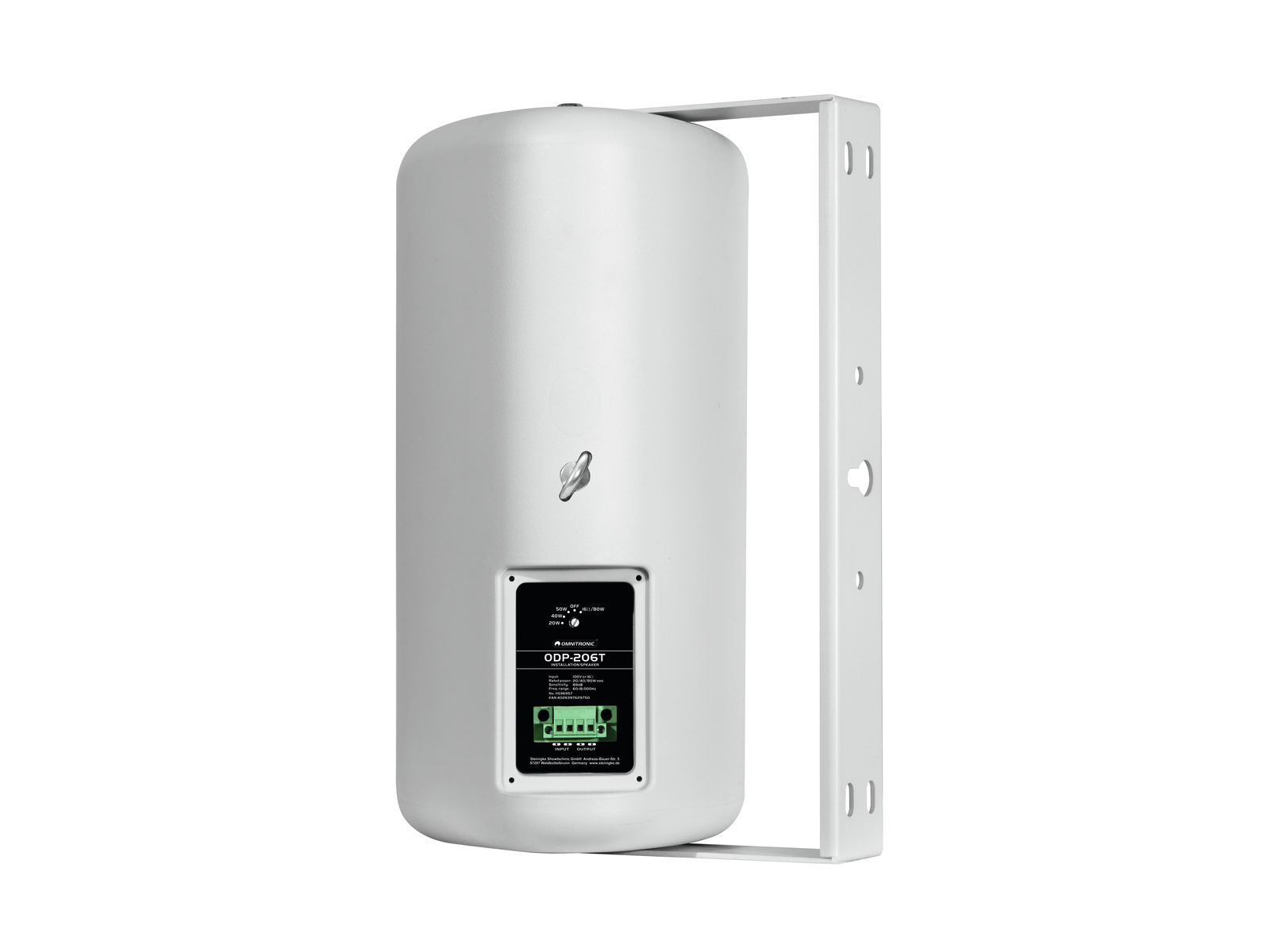 Großartiger Klang - auch für 100 Volt geeignetSie brauchen zuverlässige und ausgewogene Beschallung für den Innen-und Außenbereich von Bars, Restaurants, Shops? Oder wollen Sie im Konferenzbereich von Hotels oder Mehrzweckeinrichtungen Lautsprecher unterbringen? Die Omnitronic ODP-Serie ist dann Ihre Wahl. Denn sie erfüllt alle Anforderungen die man an einen leistungsstarken Installationslautsprecher haben kann.Die Lautsprecher zeichnen sich durch ein hervorragendes Klangbild aus. Sie erhalten sie in einer niederohmigen (16 Ohm) und einer 100-V-Variante. Damit bedienen Sie sowohl kleine als auch große Installationen. Ein schwenkbarer Montagebügel ist im Lieferumfang enthalten. Ein farblich passender schwenk- und neigbarer Wandhalter ist als Zubehör erhältlich.Durch ihr wetterfestes Kunststoffgehäuse (IP54) eignen sich die Lautsprecher bestens für die Montage im Freien. Ein Einsatz im Inneren ist selbstverständlich auch möglich.