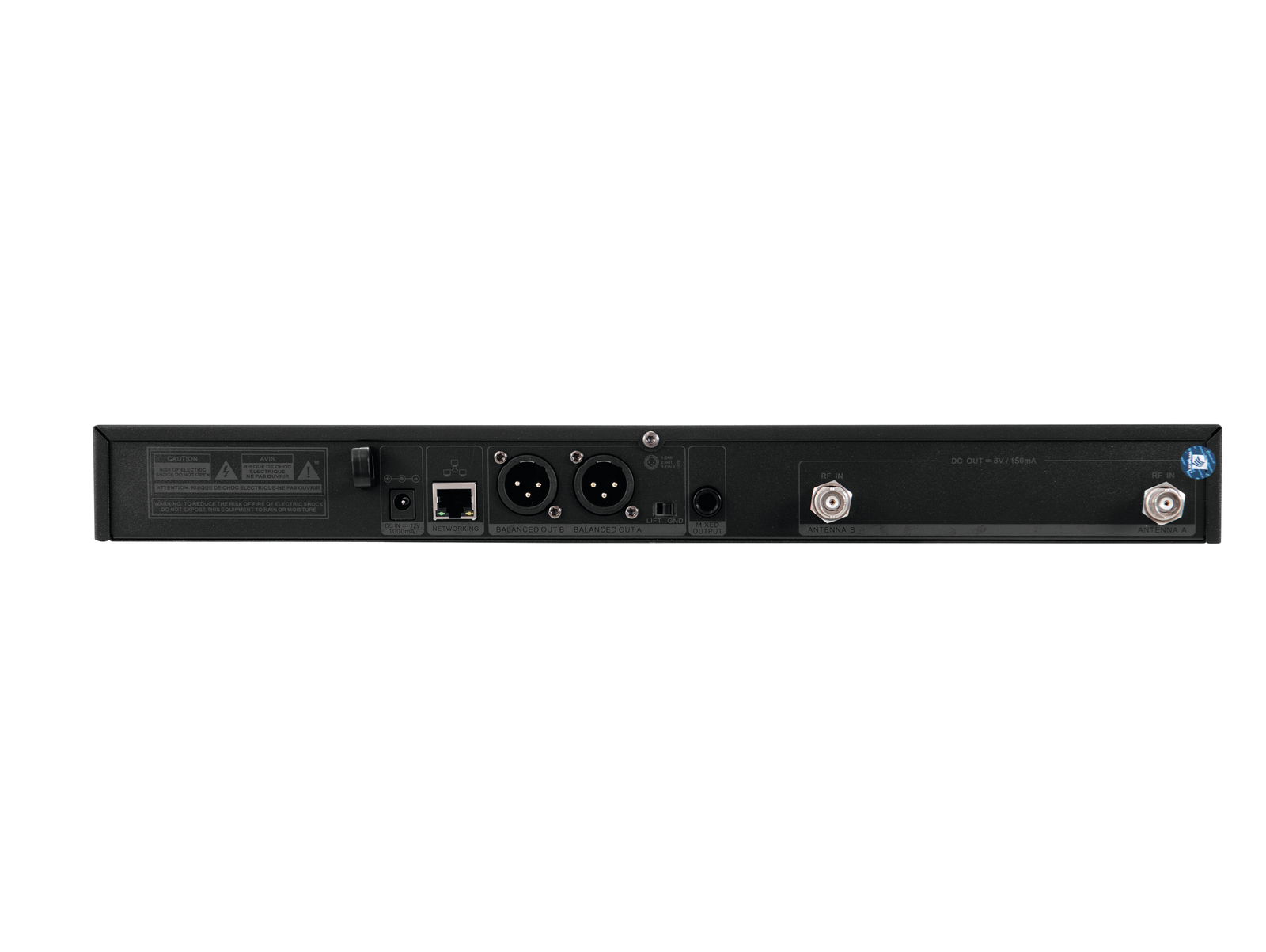Anschlüsse: | Antenne über 2 x BNC (W) 8 V Ausgang: Mikrofon über 2 x 3-pol XLR (M) Einbauversion Ausgang: Line über 1 x 6,3-mm-Klinke (unsym.) |