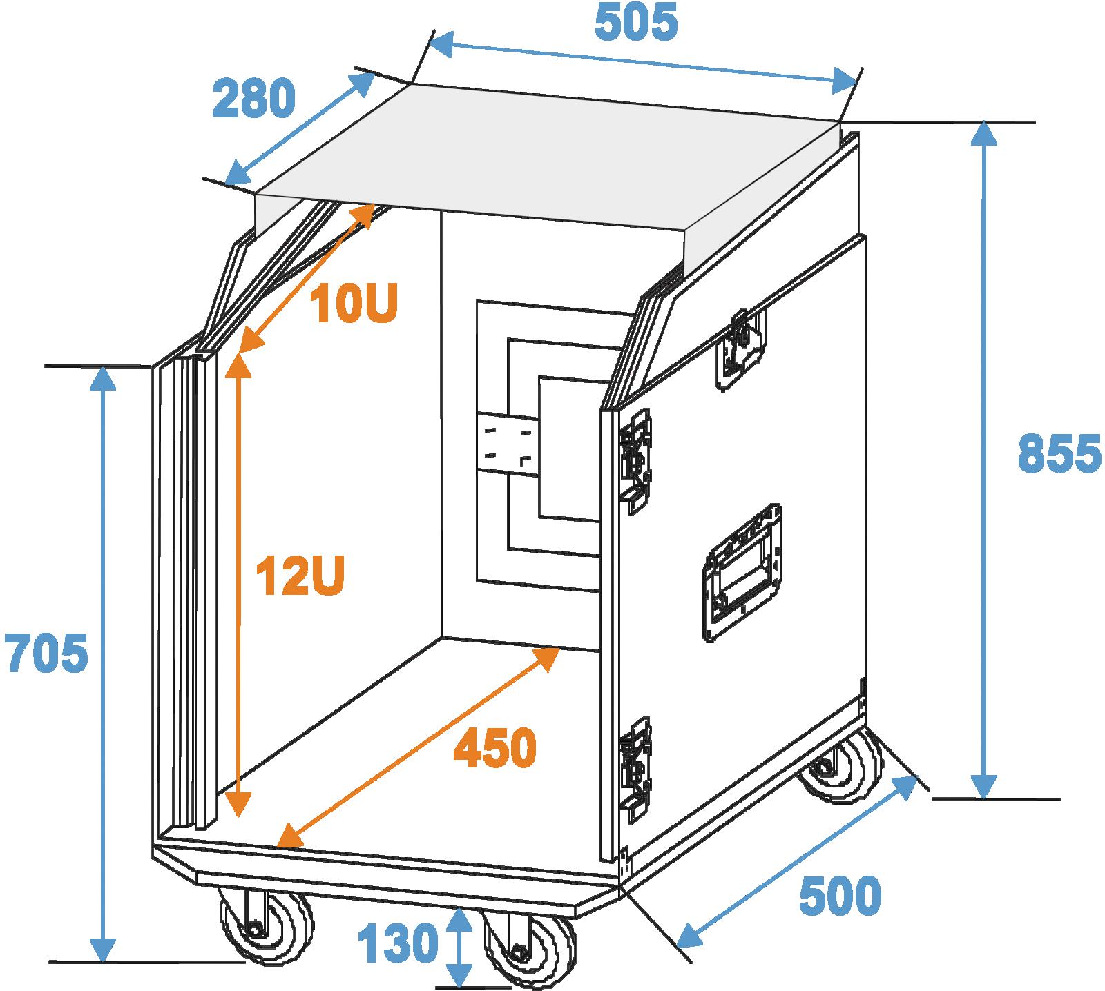 - Passend für 483-mm-Geräte (19"), z. B. Controller und Mischpulte, mit 10 HE (waagrecht) und 12 HE (senkrecht)
