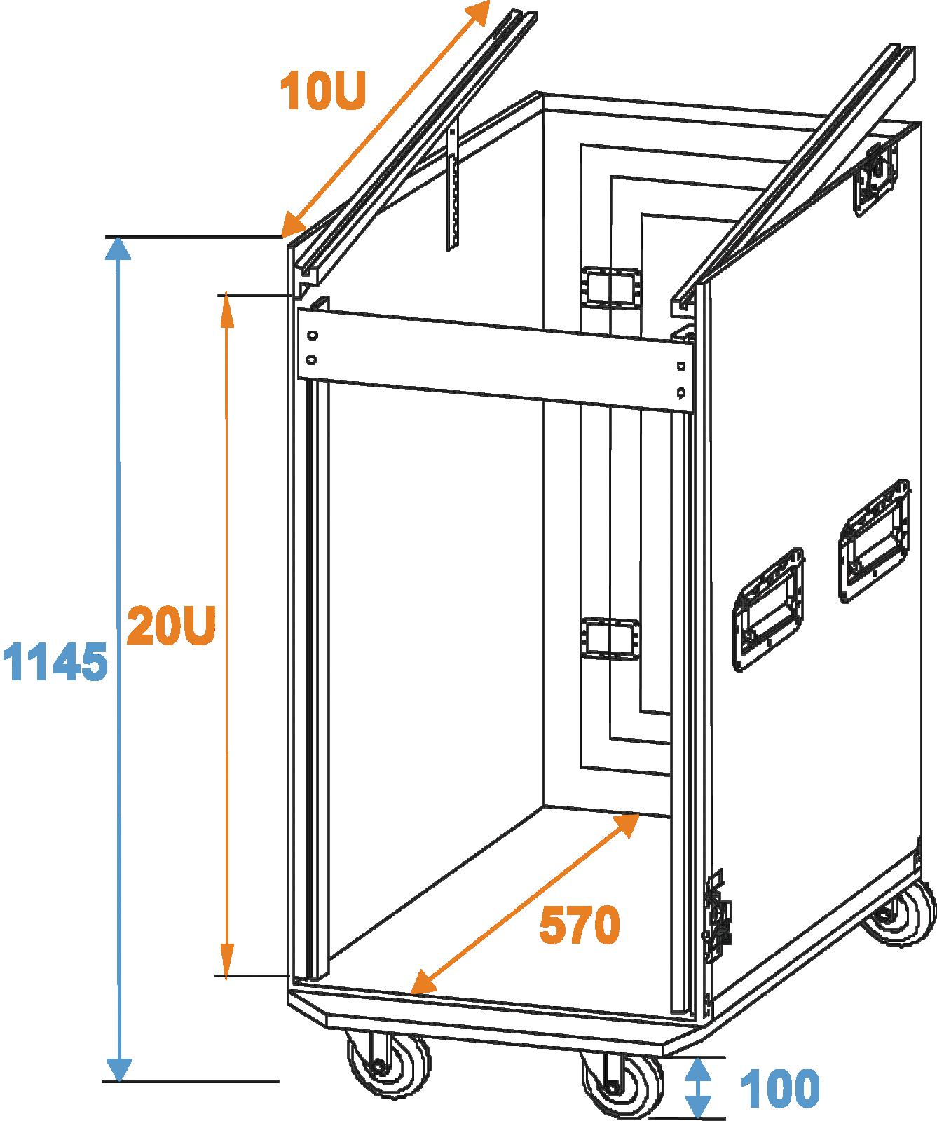 | Einbauhöhe: | Vorderseite ca. 89 cm (20 HE) Oben mit verstellbarem Neigungsvinkel ca. 44,5 cm (10 HE) |