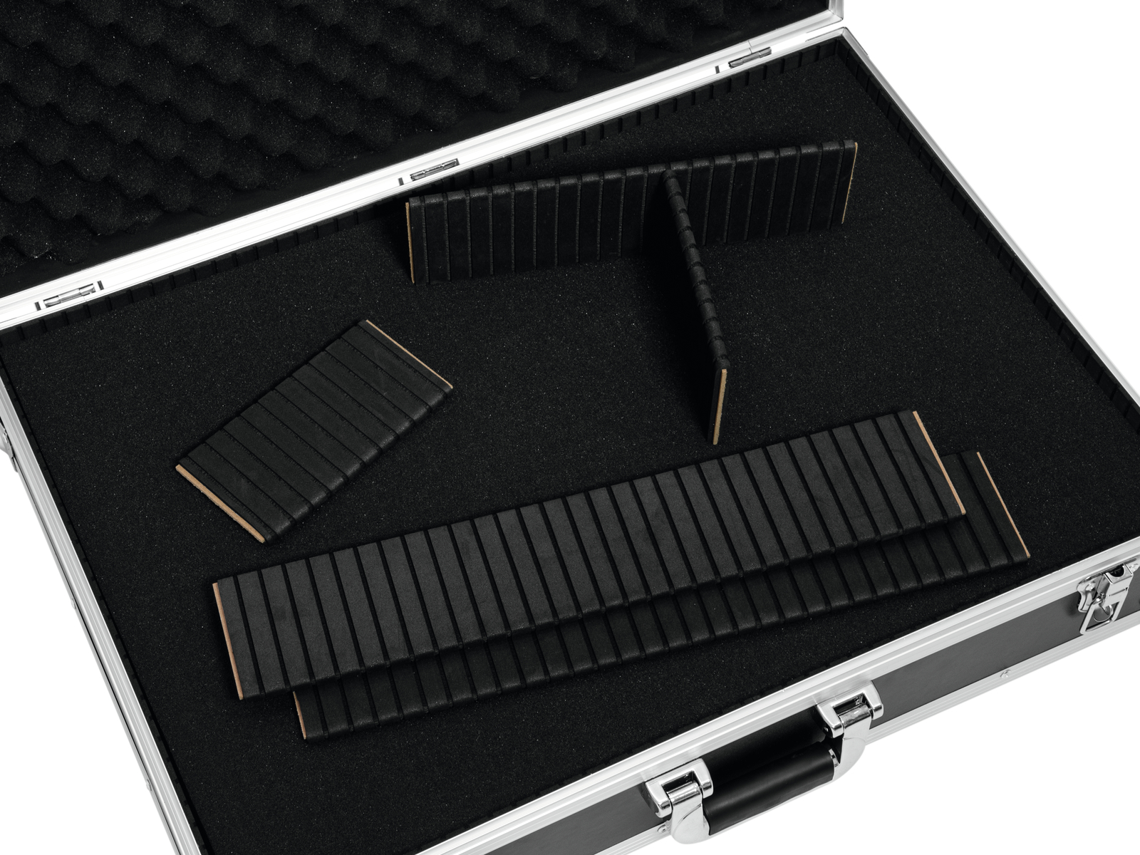 Universal einsetzbares Flightcase mit WürfelschaumDas ROADINGER Universal-Koffer-Case Pick ist mit einer hochfesten Schaumstoffpolsterung und Würfelschaum ausgestattet. Dies ermöglicht es Ihnen, Ihr Case ganz individuell an Ihr Equipment anzupassen. Die Einteilung des Innenteils ist also ohne Zuschnitt oder weitere Bearbeitung möglich. Die hochwertige Verarbeitung mit mehrschichtig verleimtem Holz , Aluminiumprofilrahmen mit abgerundeten Ecken und dreischenkligen, mittelgroßen Stahlkugelecken verleihen dem Case Stabilität.Zudem verfügt das Flightcase über zwei abschließbare Schnappschlösser und einen robusten Tragegriff.